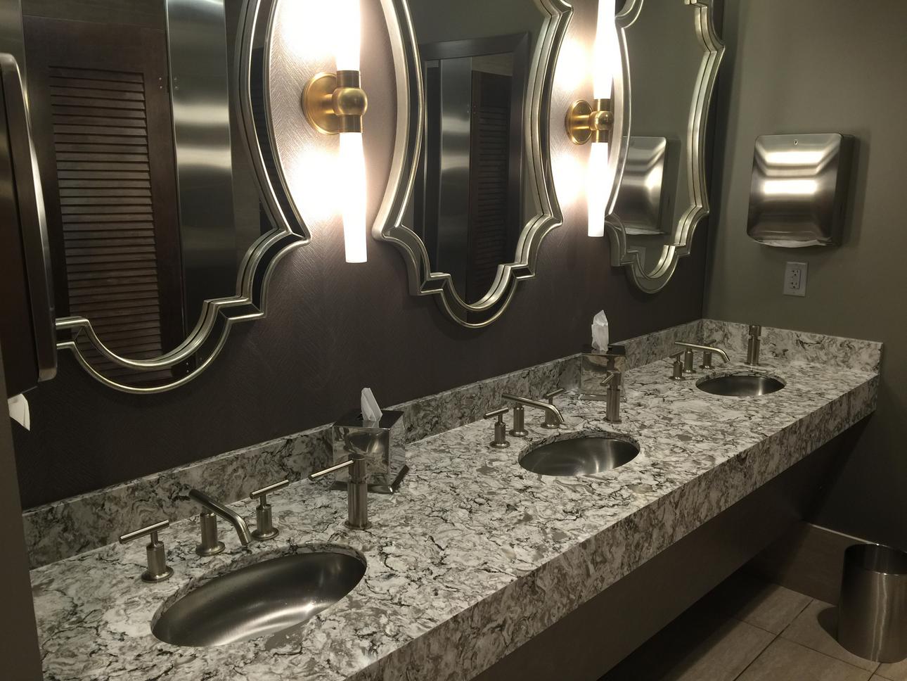 Using Cambria Quartz, Innovative was contracted to fabricate and install beautiful, apron front, ADA Compliant restroom vanities with undermount sinks, faucets and soap dispensers, completed in the summer of 2015.