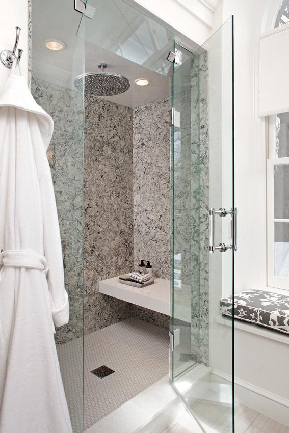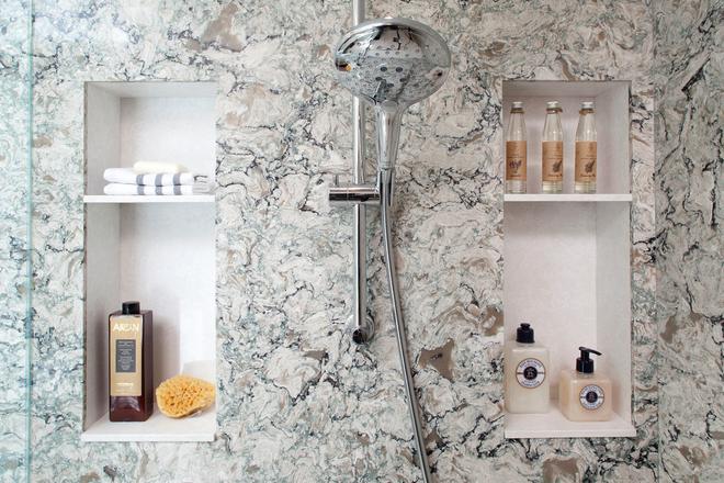 Quartz Surface Shower Surround with Custom Built-in Shower Niche