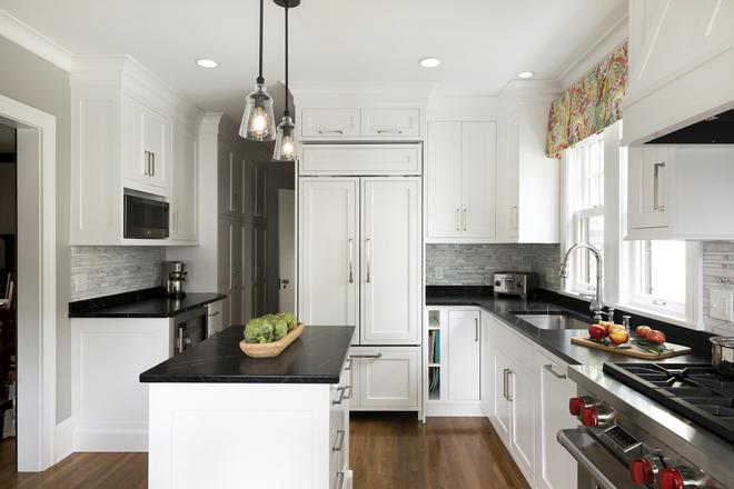 Natural Soapstone Countertops with Black Walnut Wood Table Top and Shelves
